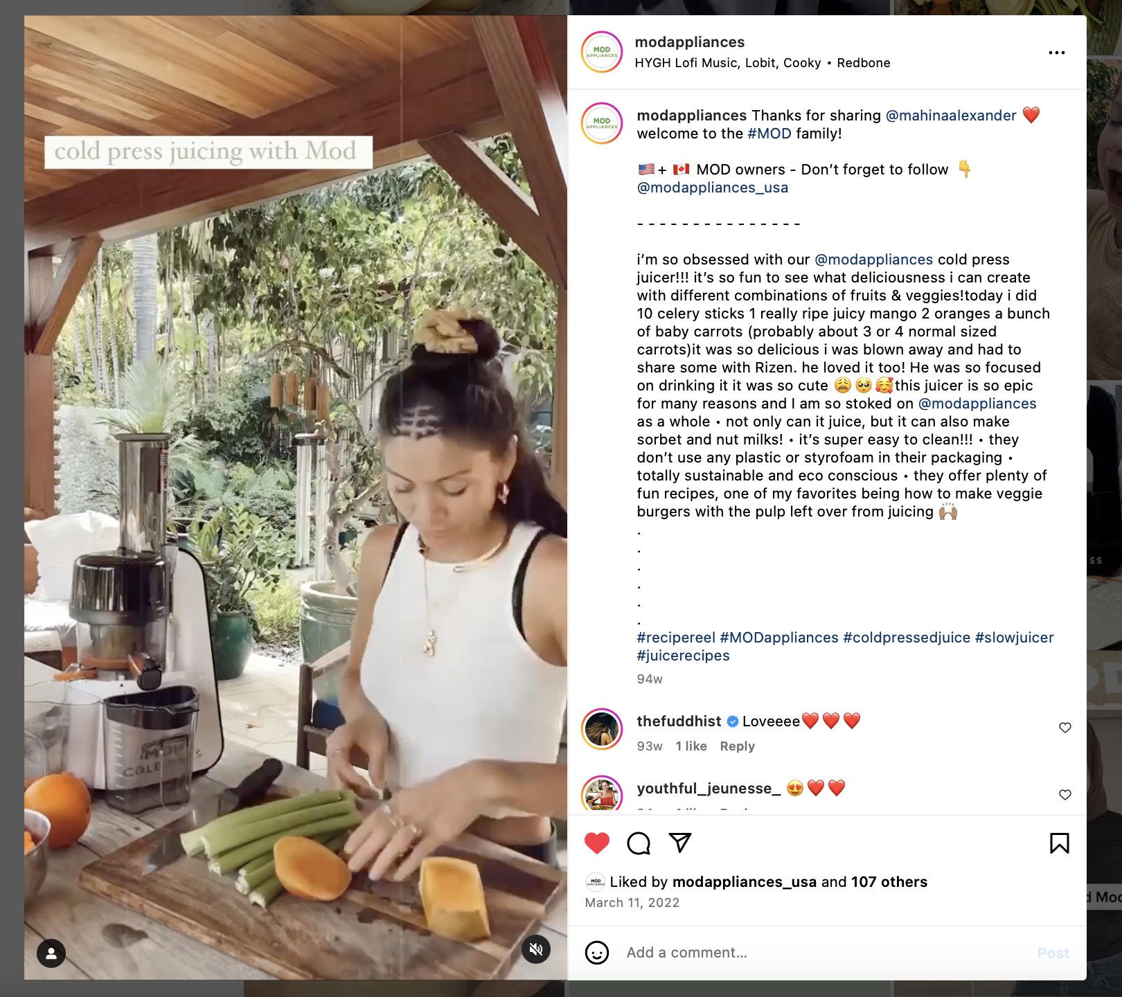 MOD Appliancesinfluencer marketing management / newsletters / social media captions / blog writing / website banners